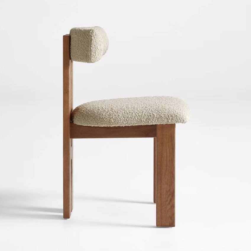 Chaise de salle à manger au design moderne, structure en teck massif avec siège et dossier rembourrés, pour la vente au détail de meubles, projets, vente en gros