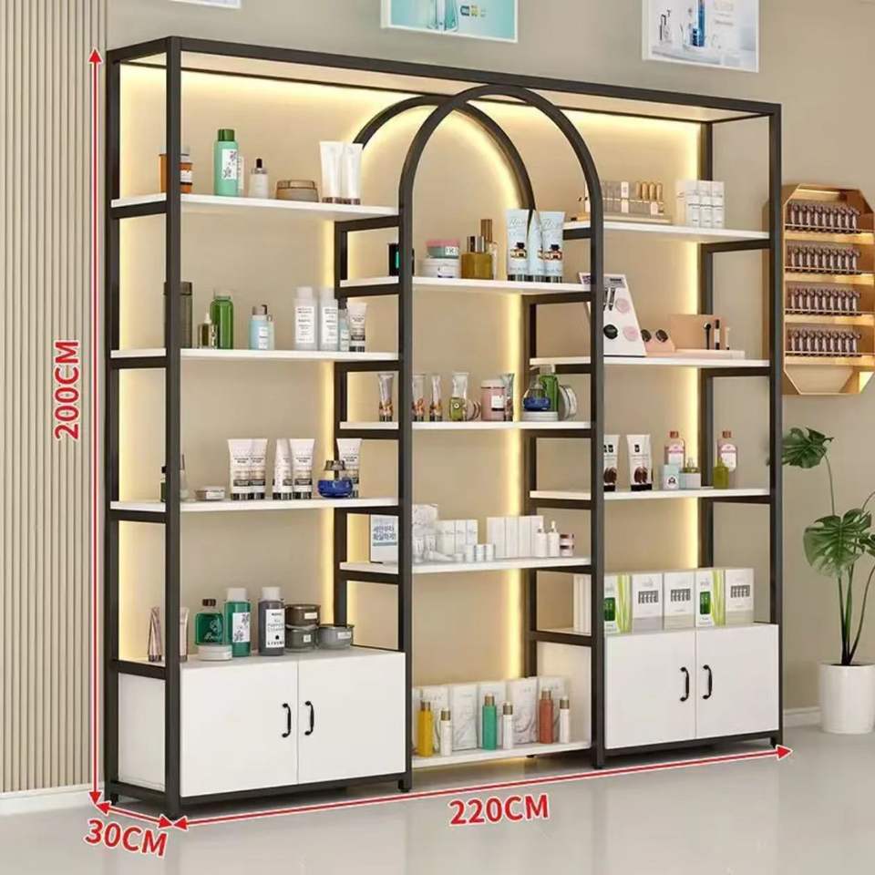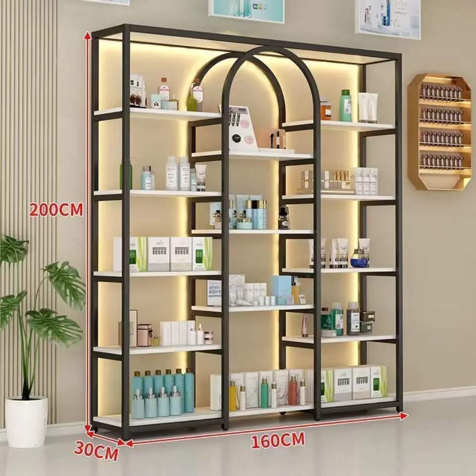 Support d'affichage de cosmétiques de conception moderne pour magasin de beauté, salon de coiffure, étagère murale, vitrines pour salon de coiffure