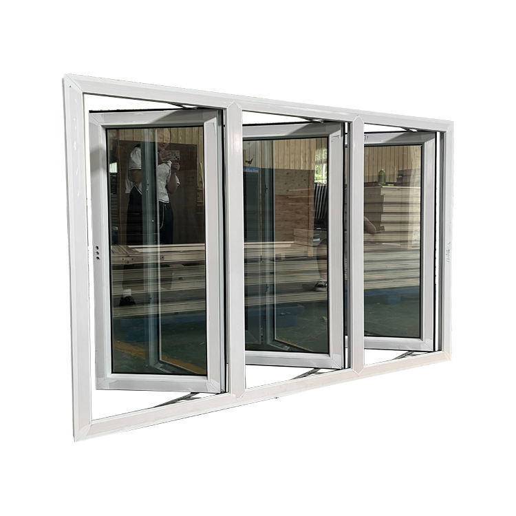 Design moderne, balcon à battant à quatre panneaux, double vitrage, fenêtre en PVC, style ouvert avec balançoire à bas prix pour fenêtres et portes en PVC UPVC