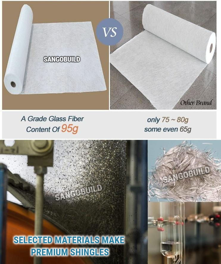 Material:Modified Asphalt, Fiberglass, Stone Chips