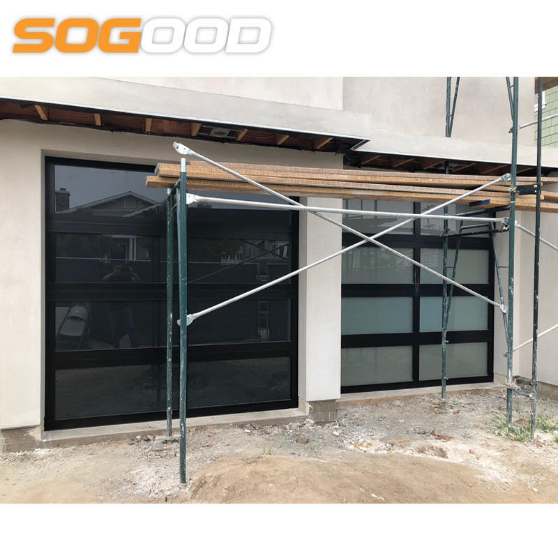 Porte de garage sectionnelle en aluminium à vue panoramique de conception moderne avec surface finie en verre, style d'ouverture automatique, décoration élégante