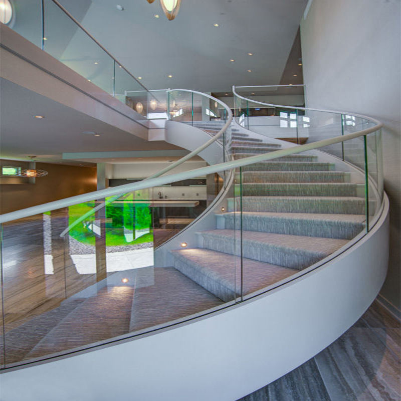Escalier en verre au design moderne pour usage intérieur, escalier hélicoïdal à colonne centrale incurvée durable