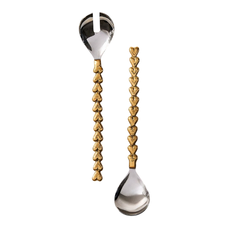 Ensemble de 2 cuillères et fourchettes à salade en acier inoxydable poli miroir avec poignée dorée au design moderne, pour la vente en gros
