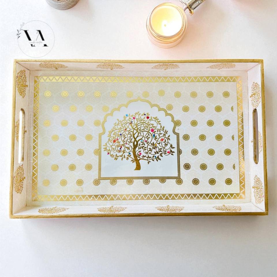 Plateau de service rectangulaire en bois plaqué or au design moderne, motif portrait, résistant à la chaleur, léger, décoration de Noël