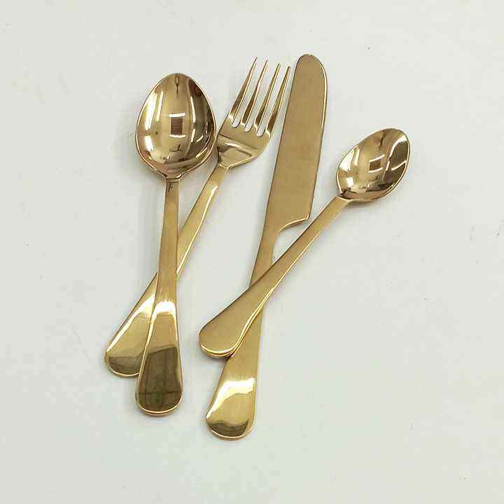 Ensemble de couverts modernes en acier inoxydable à revêtement PVD doré Cuillère à soupe et à riz écologique Design miroir poli pour cadeaux