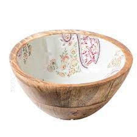 Bol de service rond en bois fait main au design moderne avec impression émaillée, vaisselle de mariage de haute qualité pour salades et soupes