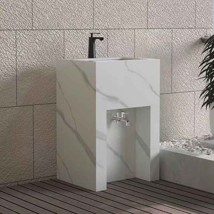 Lavabos en dalle de roche sans joint faits à la main au design moderne pour salles de bain, lavabos colonnes sur pied en gros pour maison, hôtel, villa
