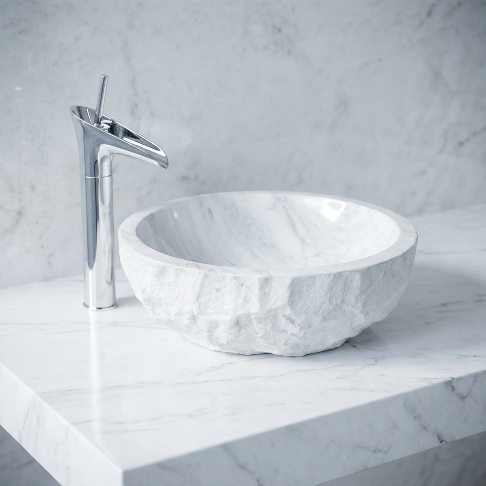 Vasque de salle de bain en marbre blanc de conception moderne, hautement écologique, finition brossée, lavabo de luxe fait main pour comptoir