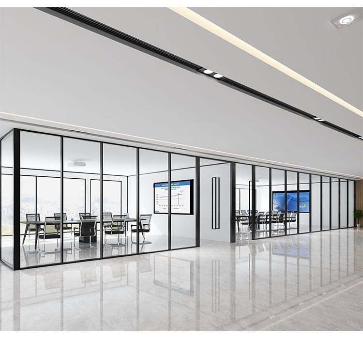 Cloison de bureau modulaire en aluminium et verre, design moderne, haute qualité, personnalisable, isolation acoustique STC 35, amovible, pour salon