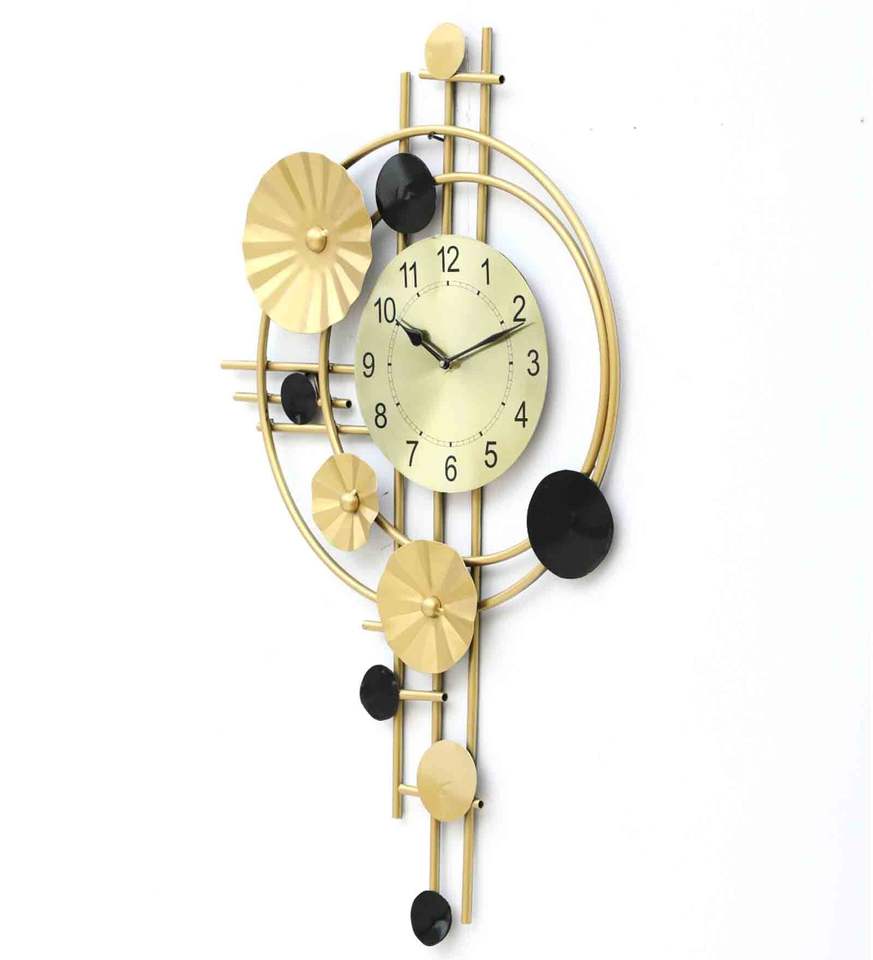 Design moderne intérieur de la maison, fer, métal, Art mural avec horloge or et noir, Art mural pour décorer l'intérieur de la maison