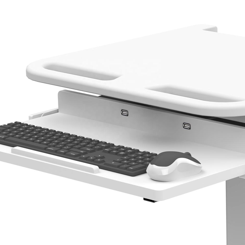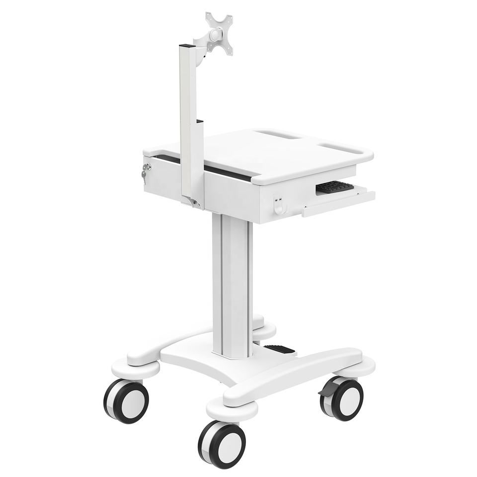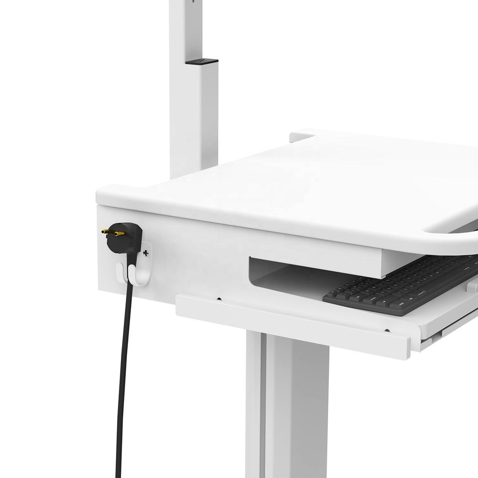 Chariot d'hôpital au design moderne verrouillable pour ordinateur portable chariot à écran unique 2 câbles USB préinstallés ateliers réglables métal