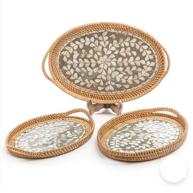 Vaisselle de qualité standard plat de service alimentaire plateaux en bois conception d'incrustation d'os forme rectangulaire plateau de service en bois de table