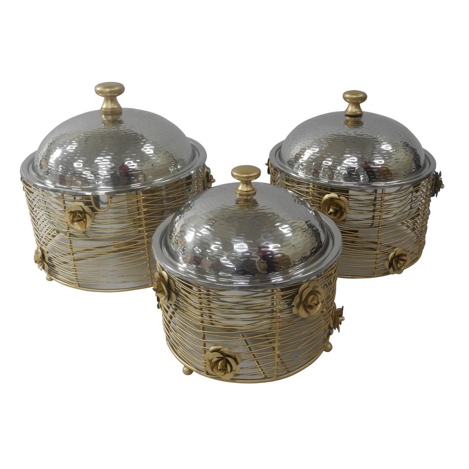 Pot chaud en fil de fer au design moderne Récipient alimentaire arrondi Casserole à couvercle isolé en acier inoxydable de grande capacité