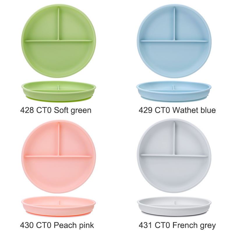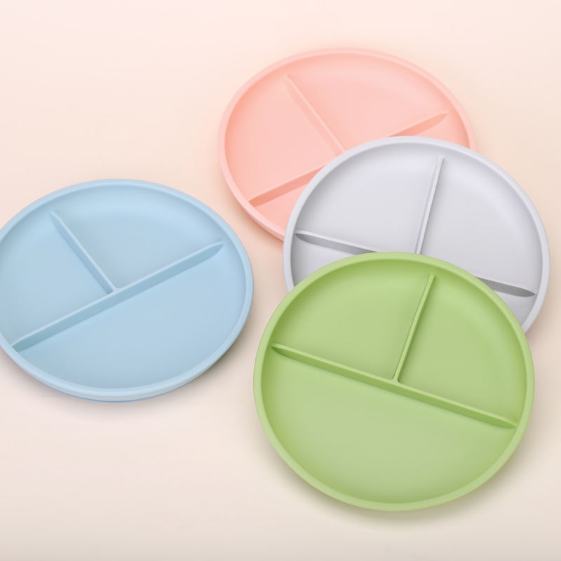 Assiettes en silicone de qualité alimentaire pour enfants au design moderne avec manchons en silicone Assiettes pour bébé divisées antidérapantes pour micro-ondes Ventouse