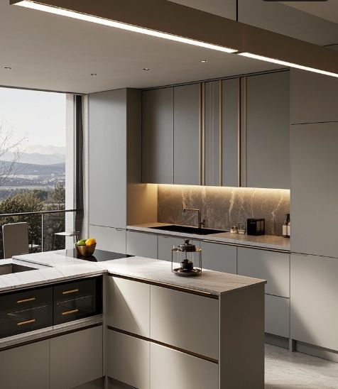 Meubles de cuisine au design moderne, ensembles d'armoires de cuisine en bois massif, armoires de cuisine de luxe sur mesure avec îlot