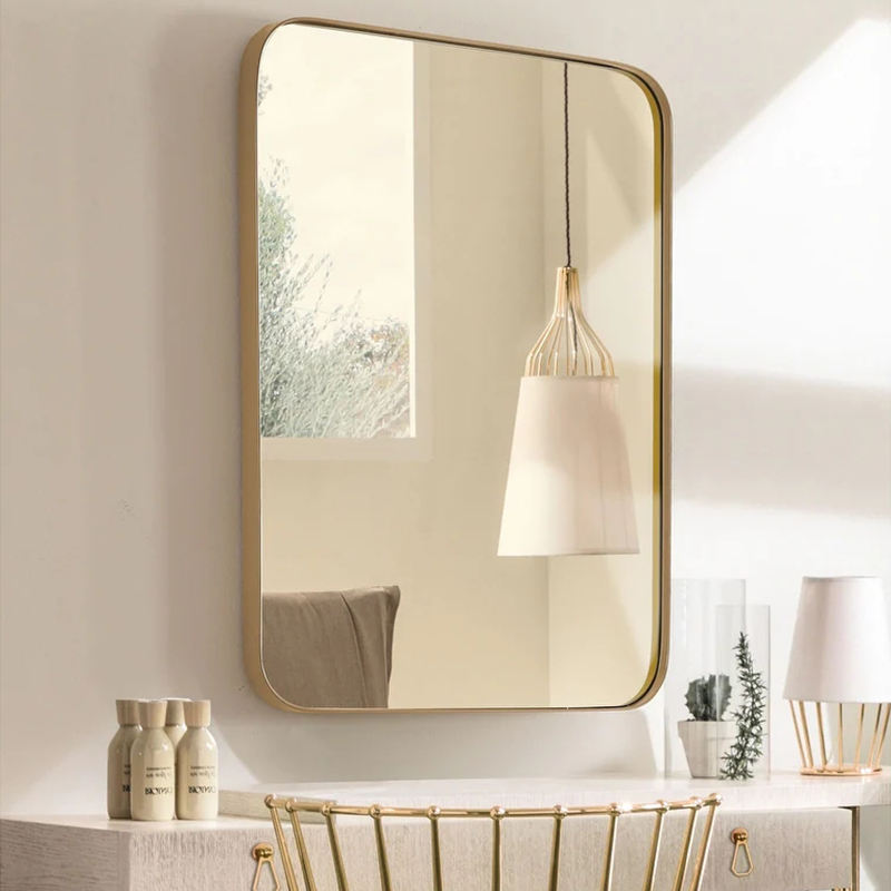 Miroir mural en acier inoxydable doré de grande taille au design moderne, directement de l'usine, pour la décoration intérieure, salle de bain, hôtel, éclairé
