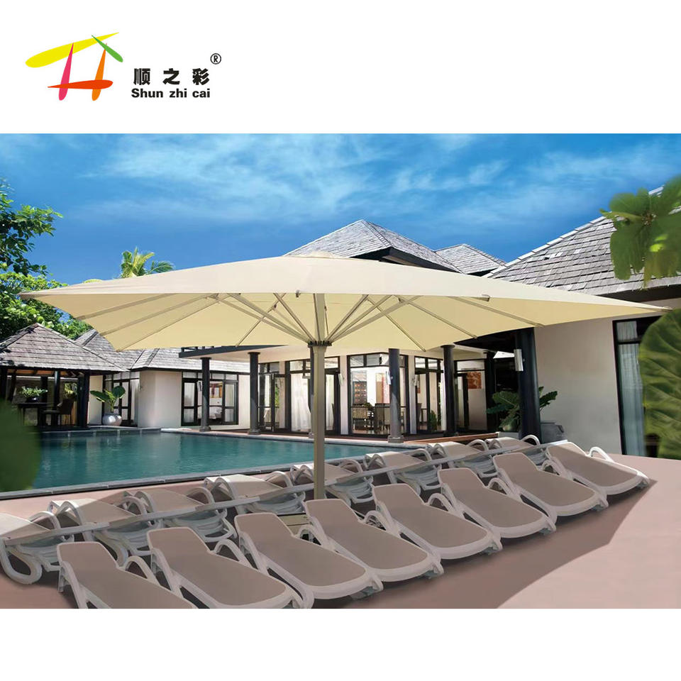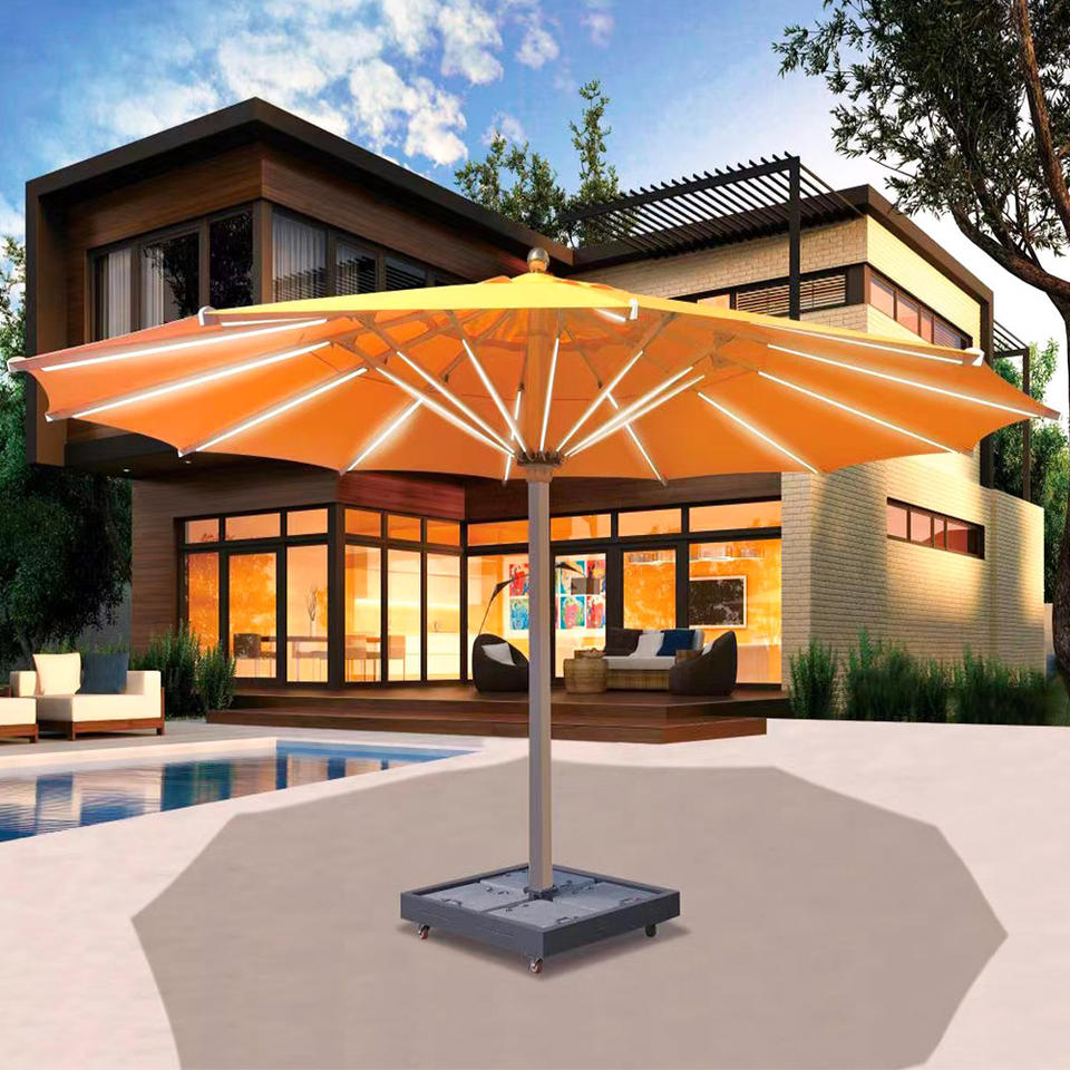 Parasol d'extérieur design moderne grand luxe 5 ~ 9 mètres en option parapluie à distance LED imperméable coupe-vent avec marbre
