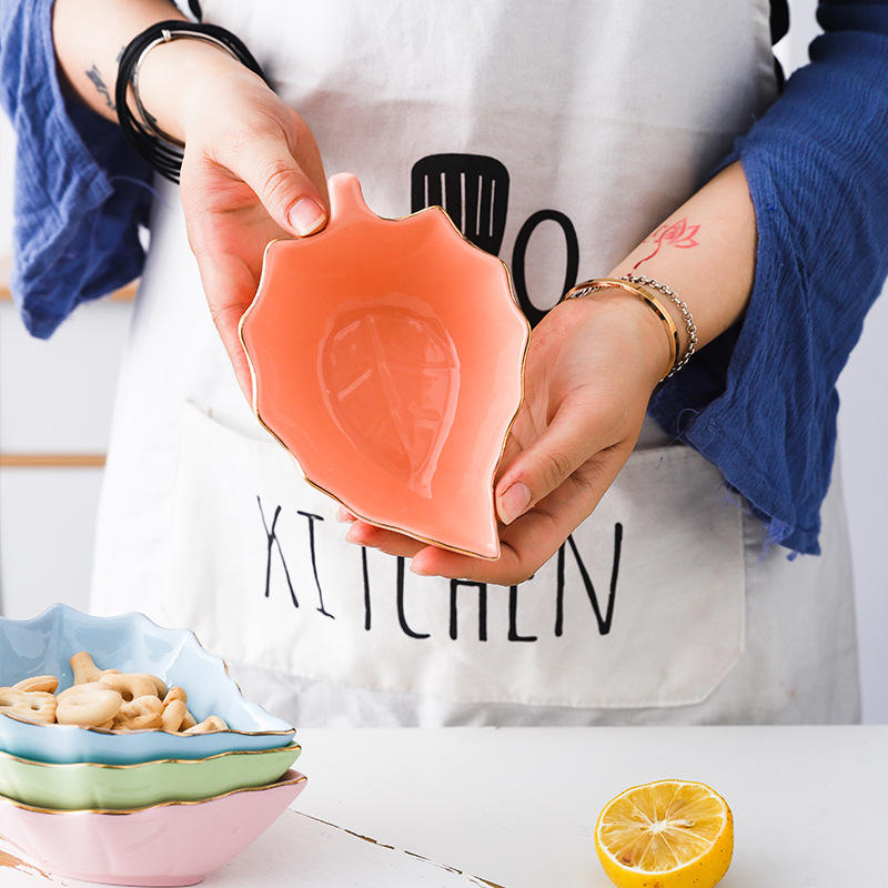 Plat de service en forme de feuille Sauce soja, bol en céramique de trempage, petit plat en céramique 1 pièce