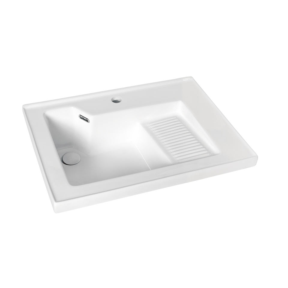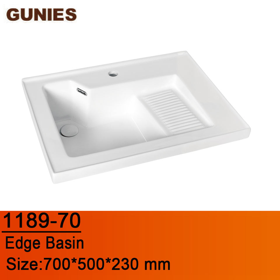 Design moderne Lavabo gauche Lavabo de toilette en céramique blanche Lavabo facile à nettoyer Lavage des mains Armoire à laver Lavabo monotrou