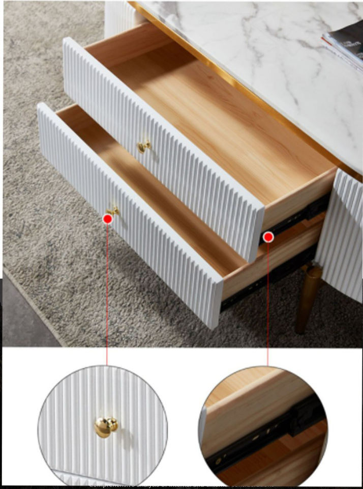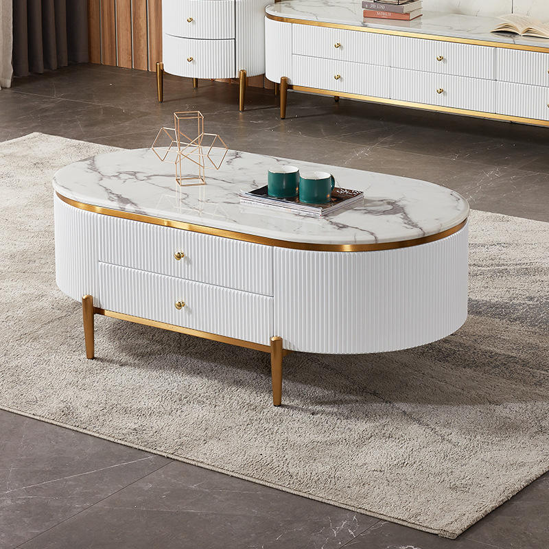 Meuble de salon au Design moderne avec dessus en marbre et cadre en acier inoxydable, meuble Tv blanc et table basse