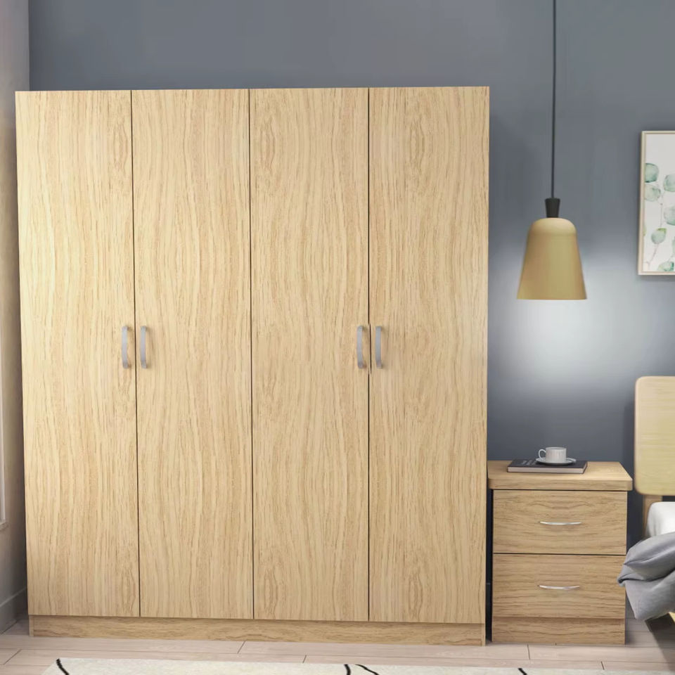 Modern Design Malaysia-Made 4-Door Bedroom OAK Wooden MDF Wardrobe Glass Hanging Space Folding Slide Door Customized Workshop