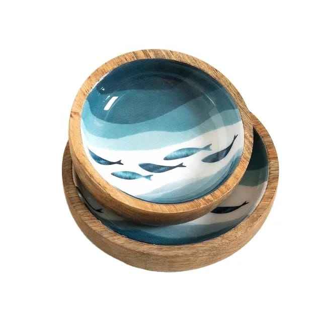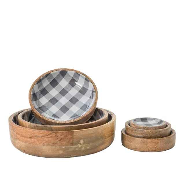 Ensemble de bols en bois de manguier design moderne design zen asiatique va au lave-vaisselle vaisselle naturel ensemble de service de salade meilleure qualité
