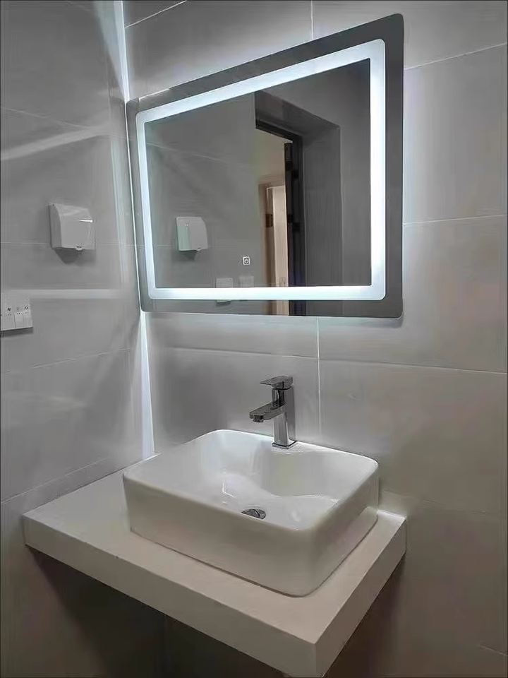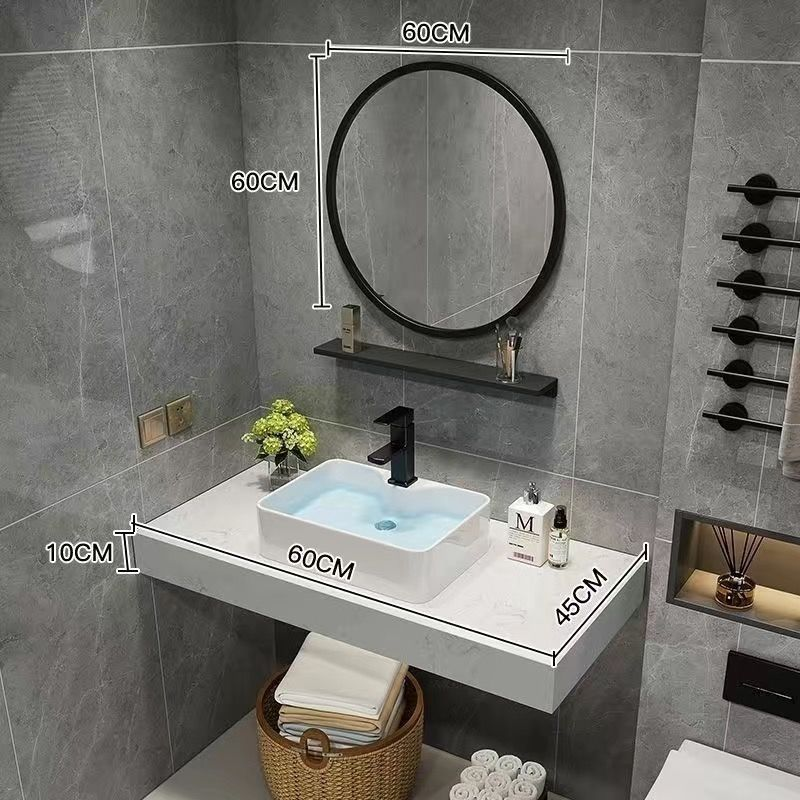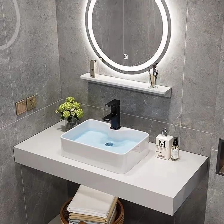Meuble de salle de bain en marbre design moderne Miroir à LED Lavabo à main Lavabo en céramique pour hôtels Ménages Hôtel Salle de bain Vanités