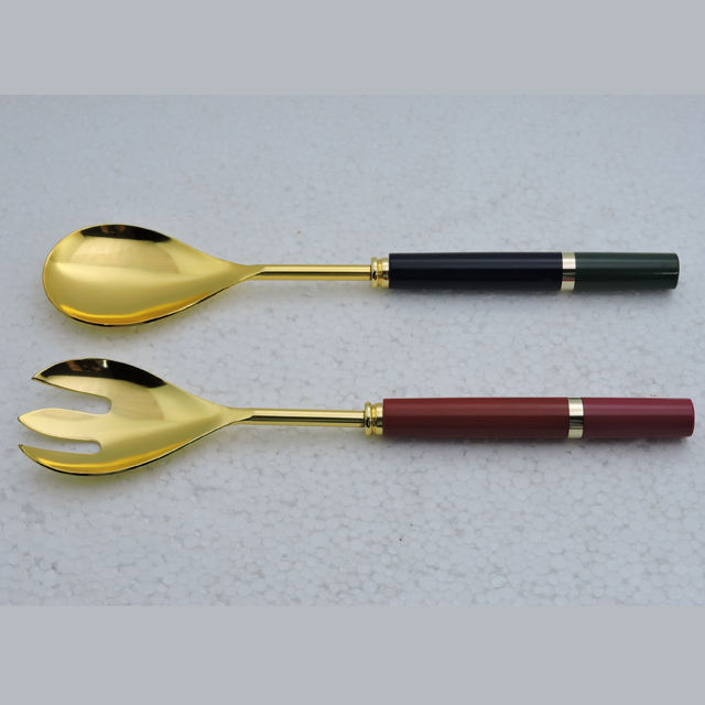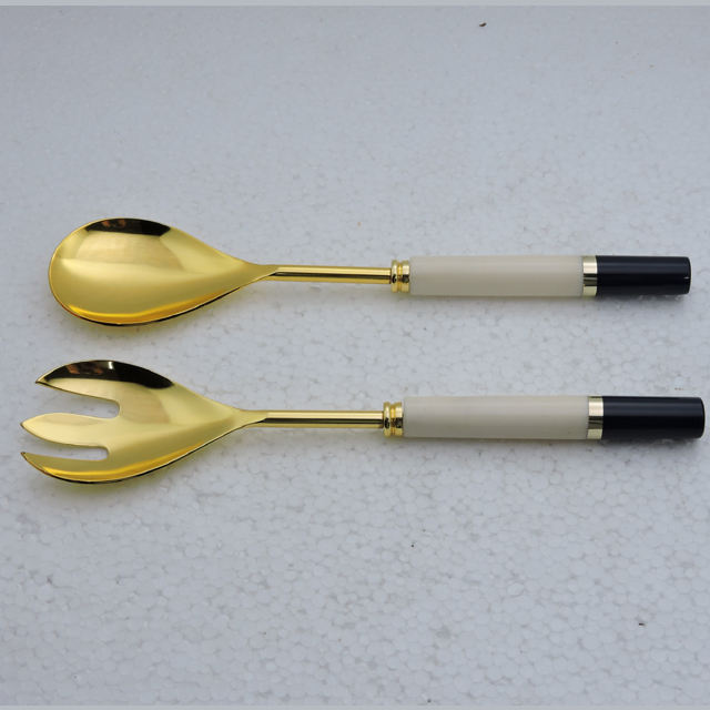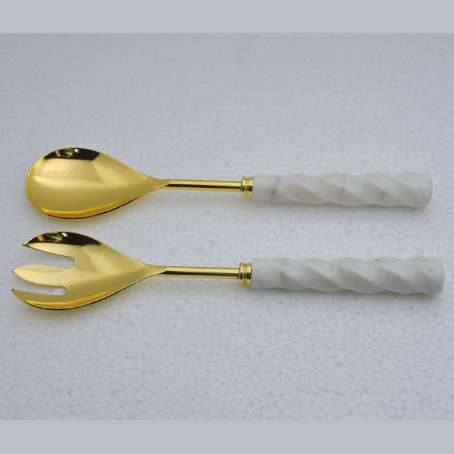 Serveur de salade au design moderne avec poignée en pierre marbrée Couverts de cuisine Ustensiles de table et de restaurant Articles d'hôtel en métal