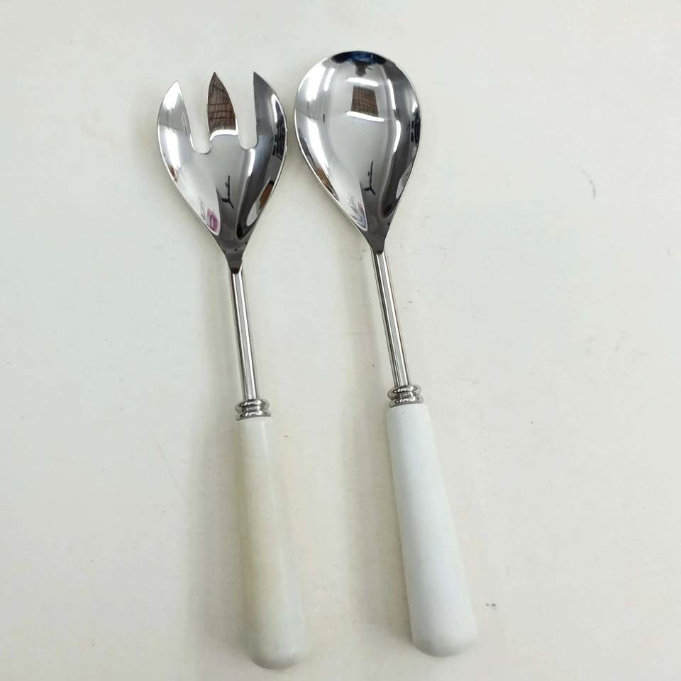 Cuillère et fourchette à salade en métal doré au design moderne avec poignée en résine imprimée pour table à manger Ensembles de couverts à salade