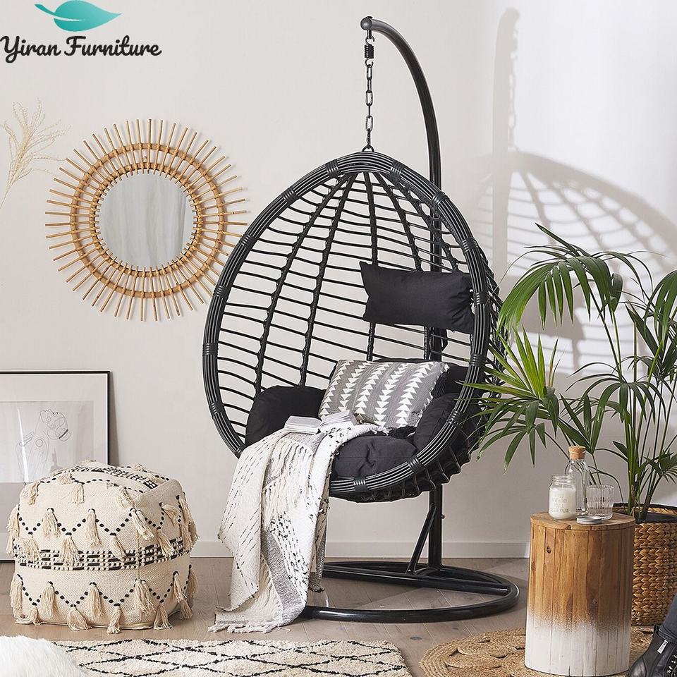 Hamac de patio en osier et métal au design moderne, balançoire suspendue aux œufs, pour l'extérieur ou la chambre à coucher, cadre en acier bon marché