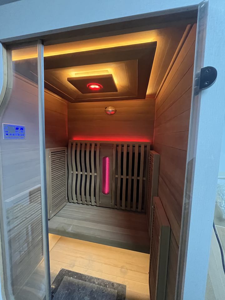 Sauna infrarouge à spectre complet pour une personne, design moderne, idéal pour l'intérieur