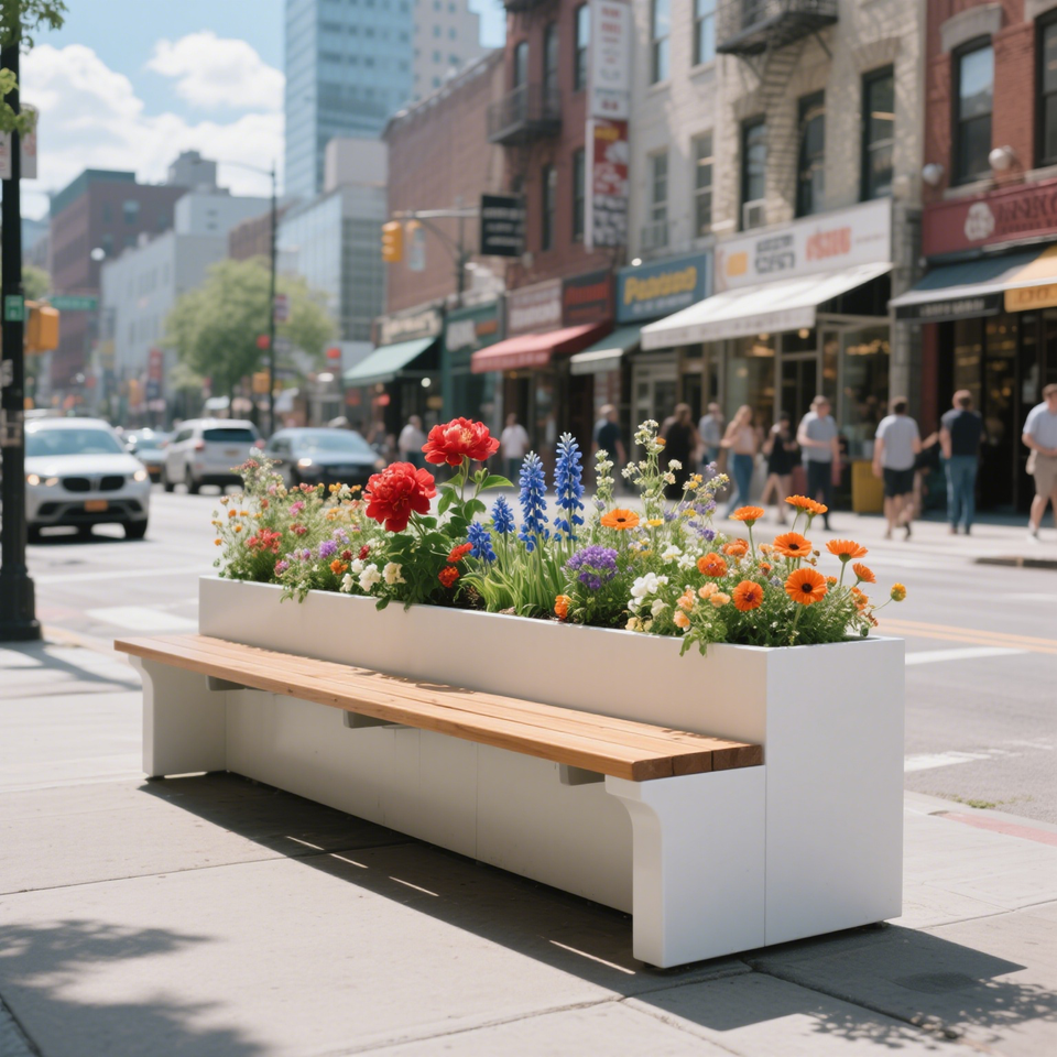 Design moderne Boîte à fleurs d'extérieur Tabouret de cour en plastique bois Combinaison Siège de terrasse Jardin Paysage Tabouret de repos pour la plantation
