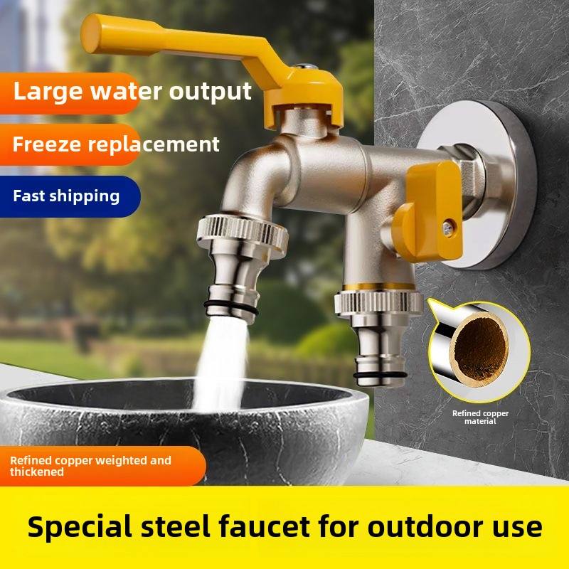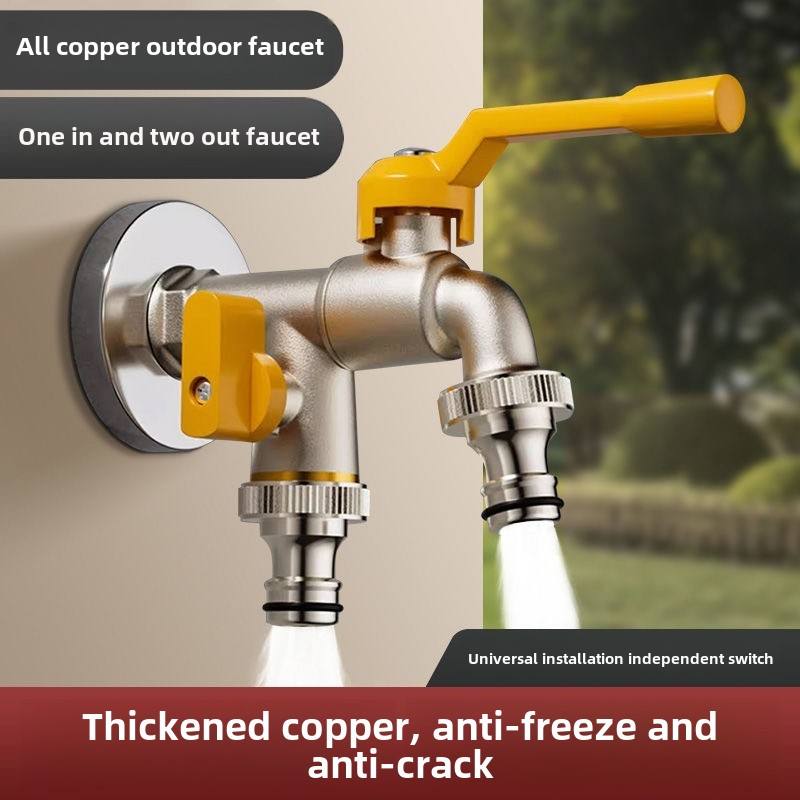 Bibcocks de jardin extérieur au design moderne Robinet antigel à double sortie avec poignée d'eau verrouillable en aluminium pour machines à laver