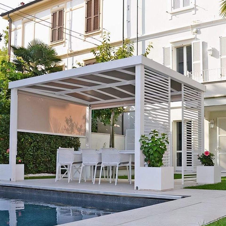 Pergola motorisée en aluminium de conception moderne pour l'extérieur, mobilier de jardin, pergolas, tonnelles, auvent de type parasol, tonnelle, maisons d'été