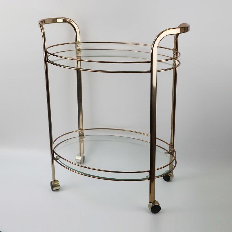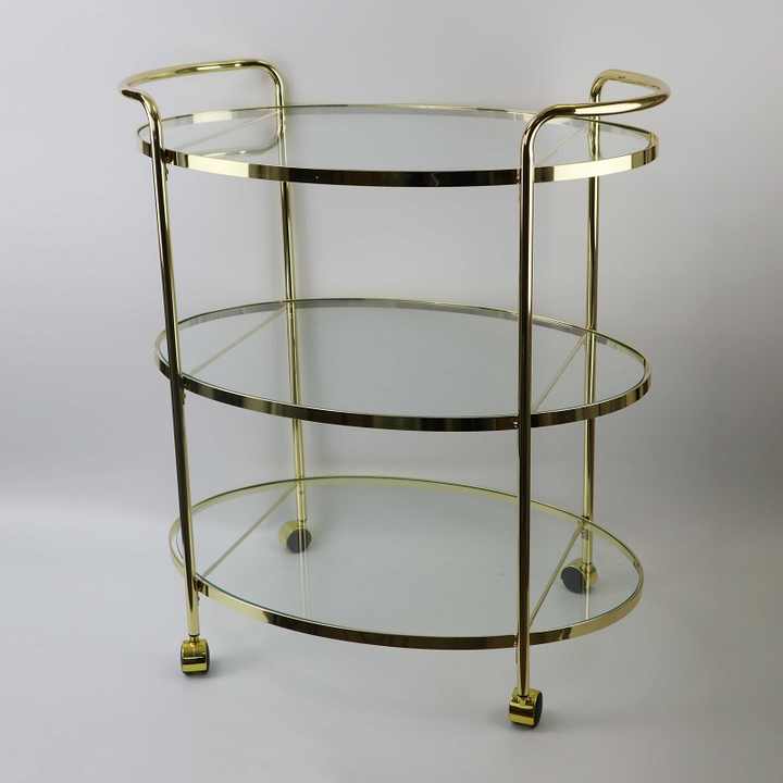 Chariot de service à thé en métal à 3 niveaux de forme ovale de conception traditionnelle pour l'hôtel, la cuisine et le bar à domicile