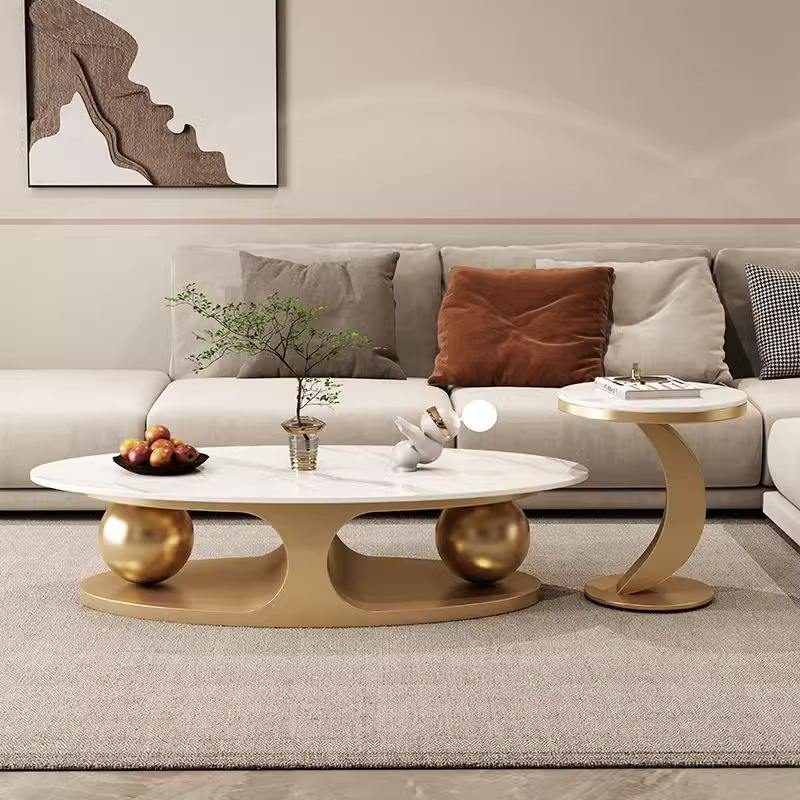Table basse ovale en pierre blanche au design moderne, meubles de maison, table basse de luxe en marbre pour salon