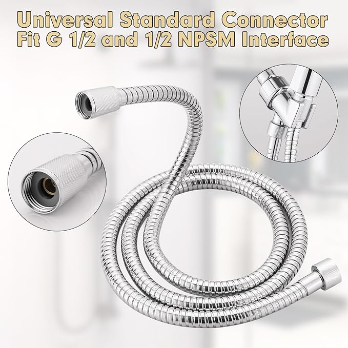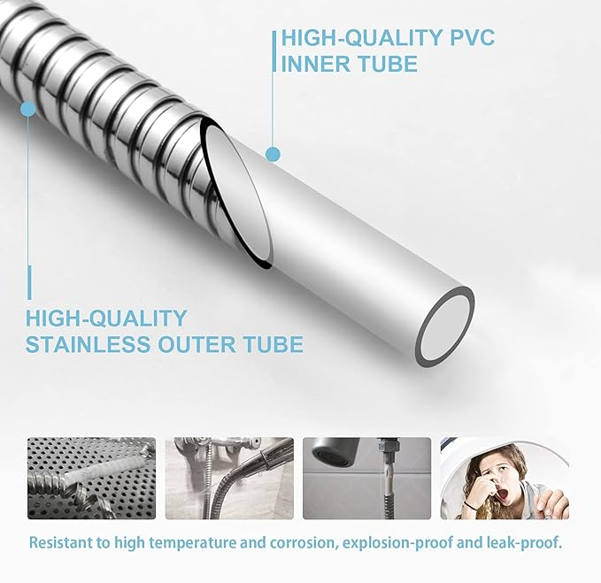 Tuyau de douche en PVC de 1,5 m au design moderne avec raccords en acier inoxydable, installation facile, accessoires pour douchettes et robinets