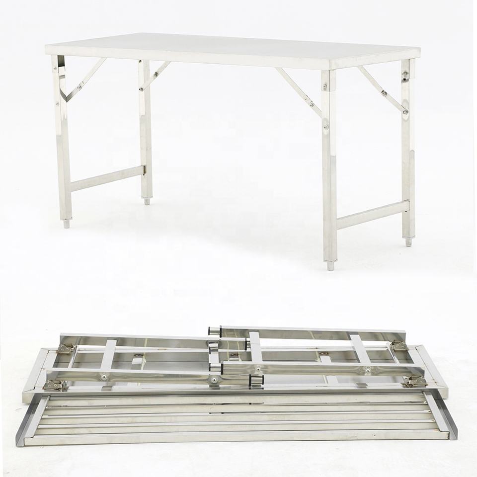 Table de table pliante portable en acier inoxydable au design moderne pour l'intérieur, l'extérieur pour le restaurant, l'hôtel et la cuisine pour le camping.