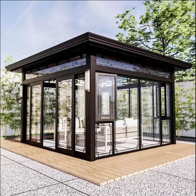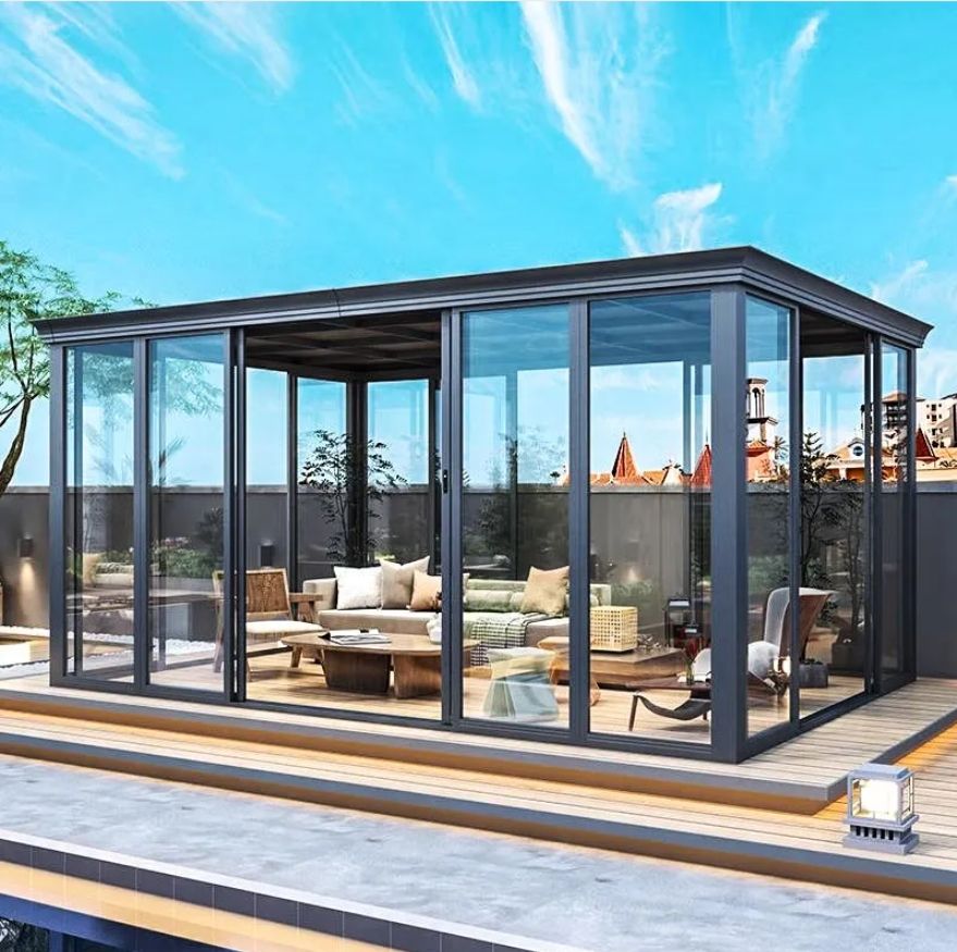 Serre moderne préfabriquée en aluminium avec toit plat pour villa, jardin d'hiver en verre, véranda