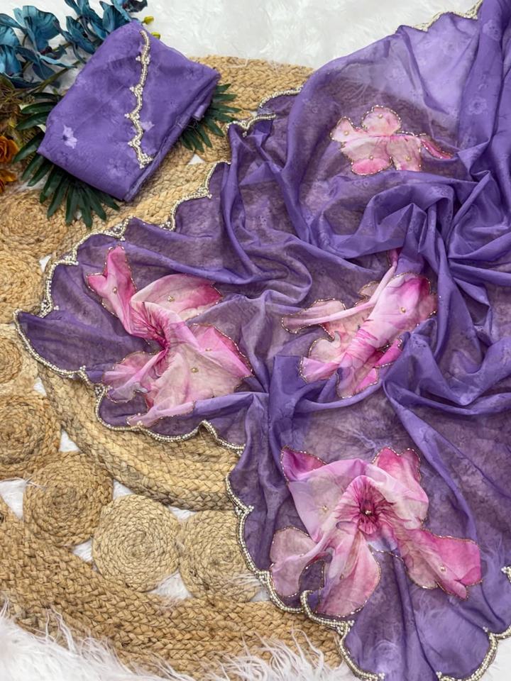 Product Name:Premium Tabby Silk With Digital Print And Hand Work Saree