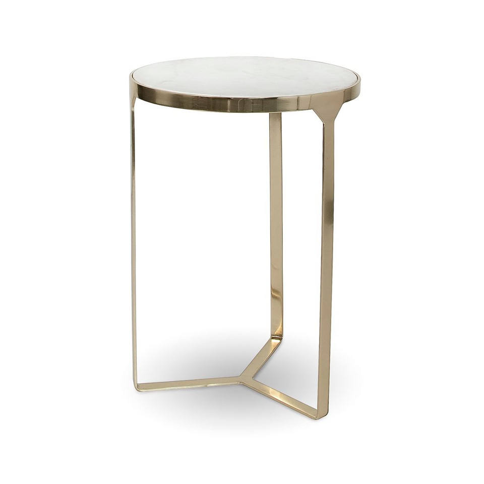 Table basse moderne en marbre blanc pur avec base en métal brillant pour la maison, salon