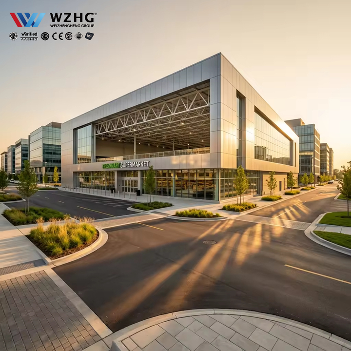 Bâtiment métallique préfabriqué en acier Q355B au design moderne pour usine, certifié ISO9001, durée de vie de 50 ans, garantie de plus de 5 ans, 200 km/h