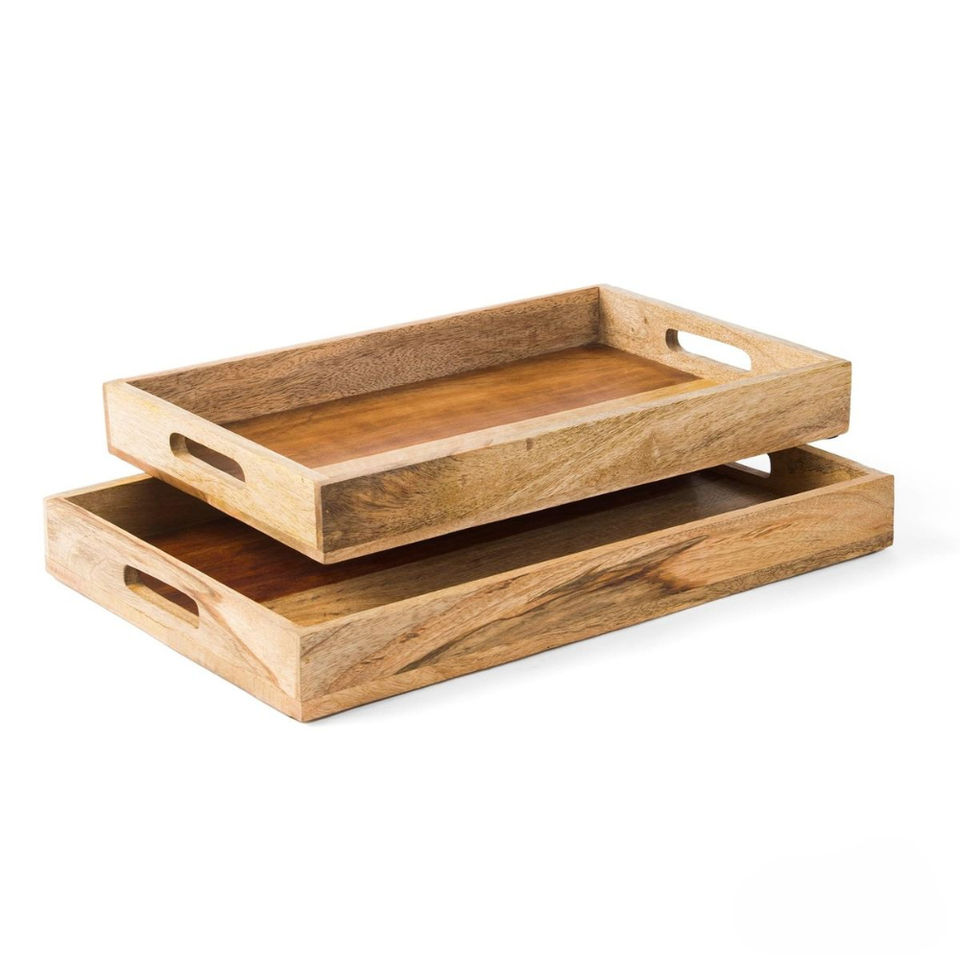 Plateau de service rectangulaire en bois au design moderne avec poignées, luxe classique, léger, pour le petit-déjeuner, la cuisine, la décoration de la maison