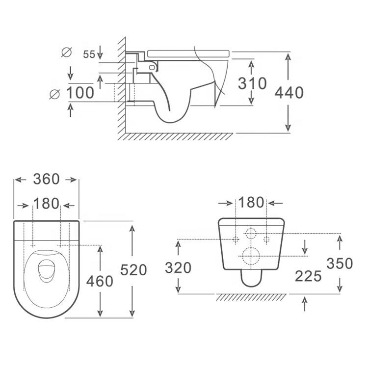 Toilette murale en céramique sans monture au design moderne Nouvelle sortie Salle de bain WC suspendu avec double chasse d'eau Toilette Suspendue