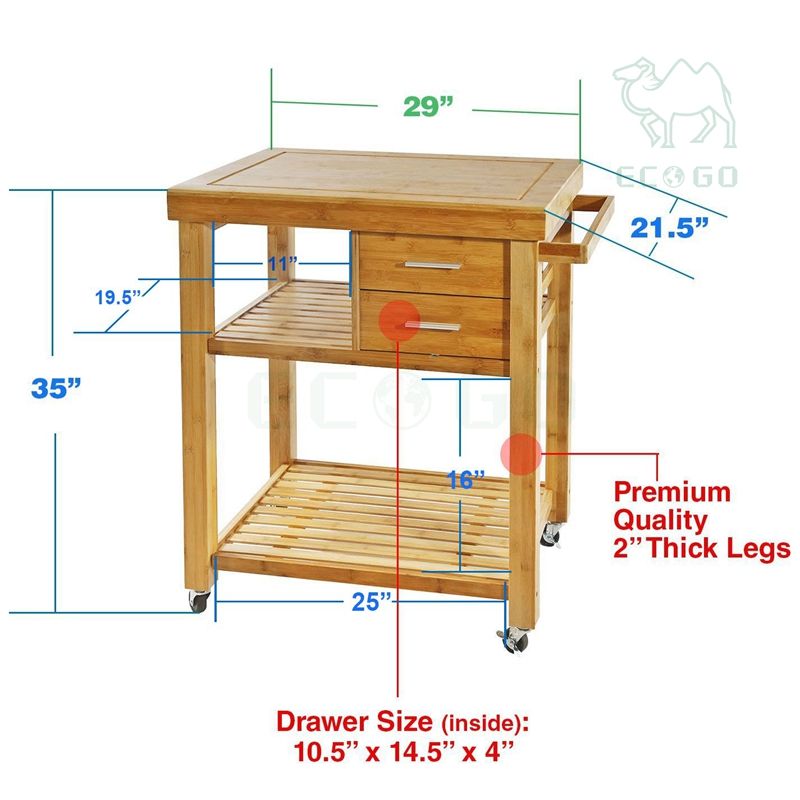 Chariot îlot de cuisine en bois de bambou roulant au design moderne avec tiroirs