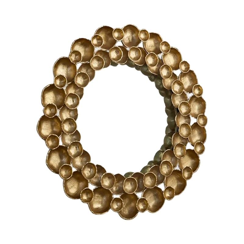 Miroir mural rond en métal au design moderne avec médaillons dorés superposés, finition laiton antique en aluminium, accent décoratif pour la maison