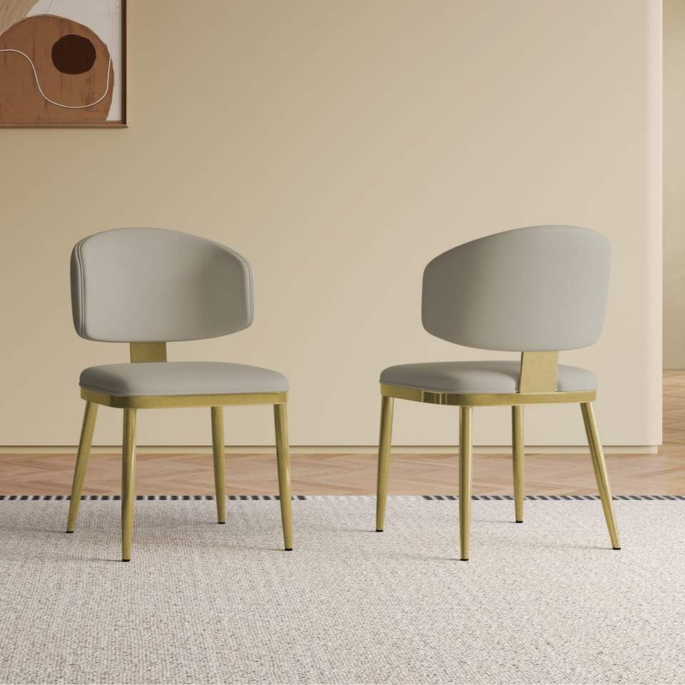 Modern Design Set of 2 PU Leather Metal Dining Chairs for Kitchen & Dining Room in Grey Color