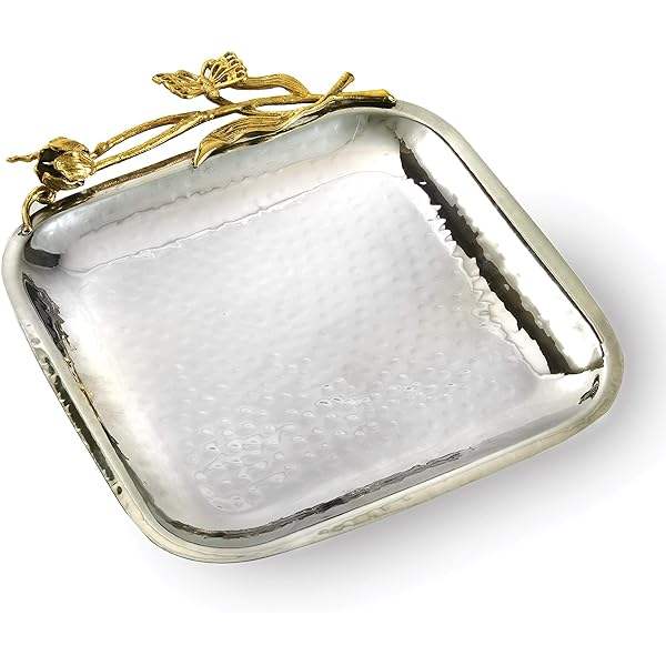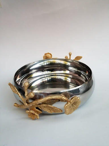 Bol de service en laiton argenté au design moderne motif floral créatif pour la maison hôtel restaurant camping vaisselle