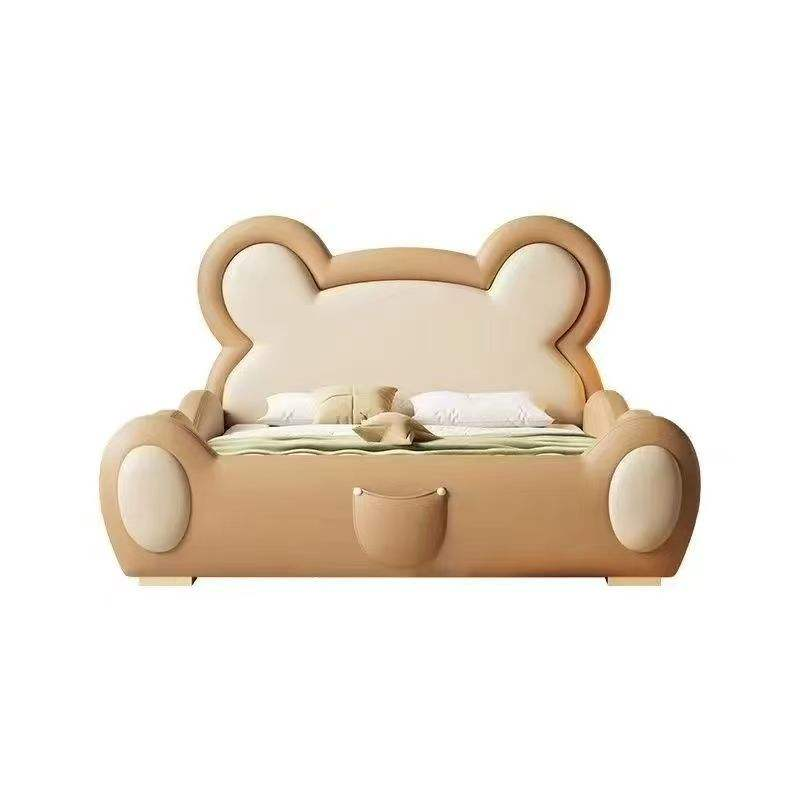 Lit simple à couverture souple au design moderne pour adolescents, garçons et filles, style crème, lit en cuir en forme d'ours