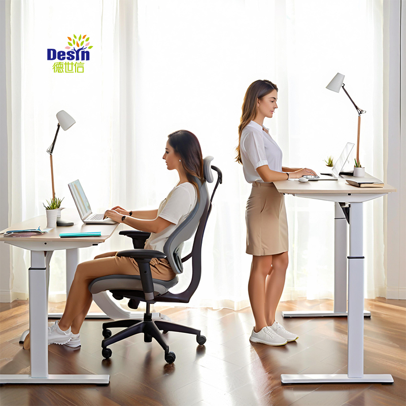 Meuble de bureau intelligent au design moderne, table de travail électrique réglable en hauteur, bureau assis-debout, chaise confortable